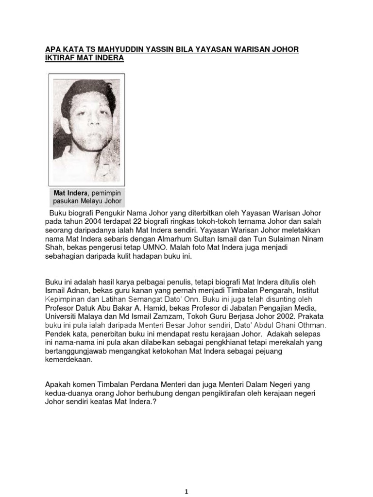 Apa Kata TS Mahyuddin Yassin Bila Yayasan Warisan Johor Iktiraf - pernahkan sultan melayu berperang